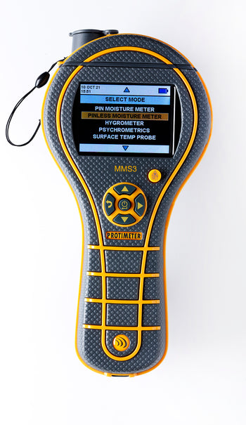 Now with wireless capability! The Protimeter MMS3® represents the latest in moisture measurement technology. Its ergonomic 4-in-1 design allows for fast and accurate full building diagnostics both on and below the surface, from new building construction to refurbishing projects in existing buildings. Also, with built-in hygrometric capabilities