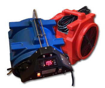 This combo has 2 fans and 1 universal heater. Exceptional value and a saving of $370. The Universal Air Mover Heater is made to make any axial or centrifugal fan into a heater and with adjustable poles this portable heater adjusts to the width of your Fan and converts it to a heater .The HS Axial Air mover was engineered to compete in the low profile and centrifugal category. Note: random red or blue fan